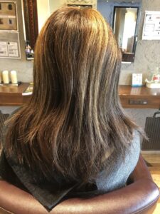 毛先はストレートなんですけど、ハイライトなどでダメージによるパサつきが気になります。